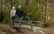 Circles figure prominently in the lives of Mary Ahern and David Ruedeman. In her woodland garden and in her paintings, circles represent women. In a romantic example of life coming full circle, the two worked together, lost touch, and found each other again. Their first official date was on wheels – a memorable bike ride in which Mary got a flat and Dave came to her rescue.