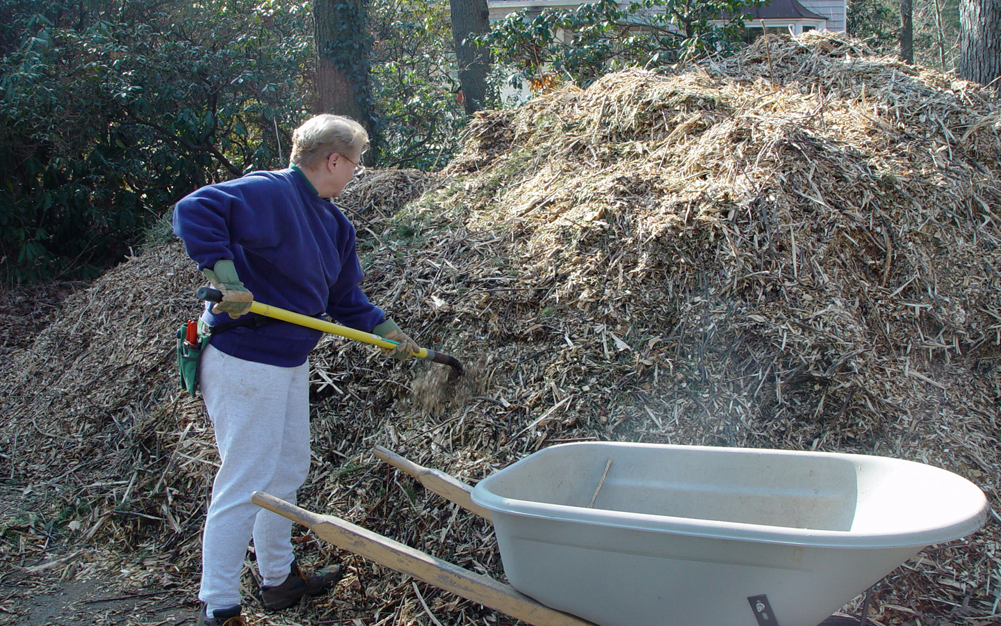 As the paths began to appear I decided that the springy feel of the natural woodland ground brought a comforting physical experience right up through the soles of my shoes into my body. I was determined to use wood chips to maintain that back-to-nature harmonious and quiet experience. I continue this even now. About every 5 years the wood chips have converted to compost and are scooped into the garden beds. New wood chips are delivered in huge piles and the process begins again.