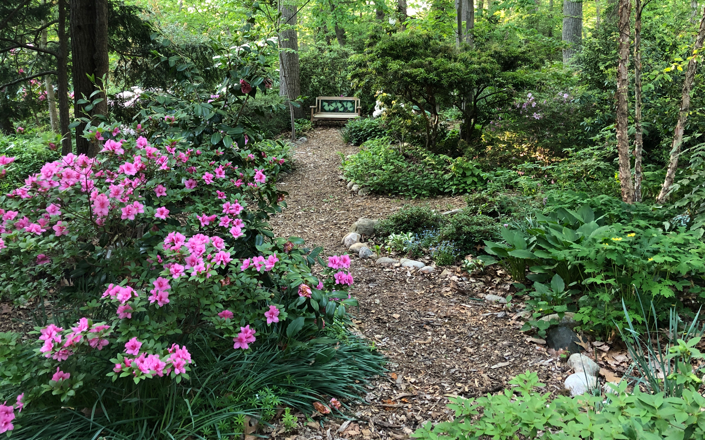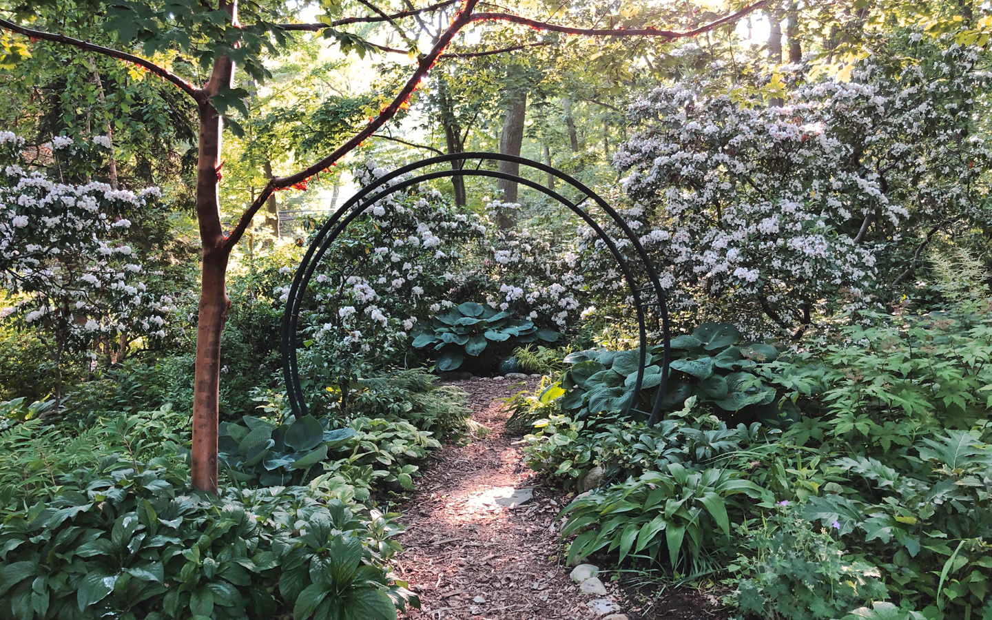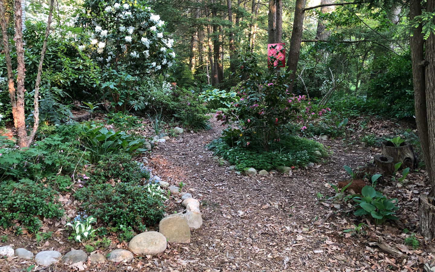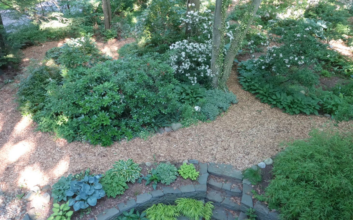 In researching what was native to the area I found that the Mountain Laurels which grew throughout the garden were here before any of our houses appeared. I focused on preserving them. These native Kalmia latifolia were under stress due to the many years of drought they were experiencing. I was determined to honor them and work toward their preservation.