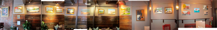 I imported the photos into Photoshop. I created a panorama of the interior hanging space with photos of Greg’s show. Then I made a mock-up of the walls & created placeholders for the different sizes of my own Artwork since I know what sizes of Art I generally work in.